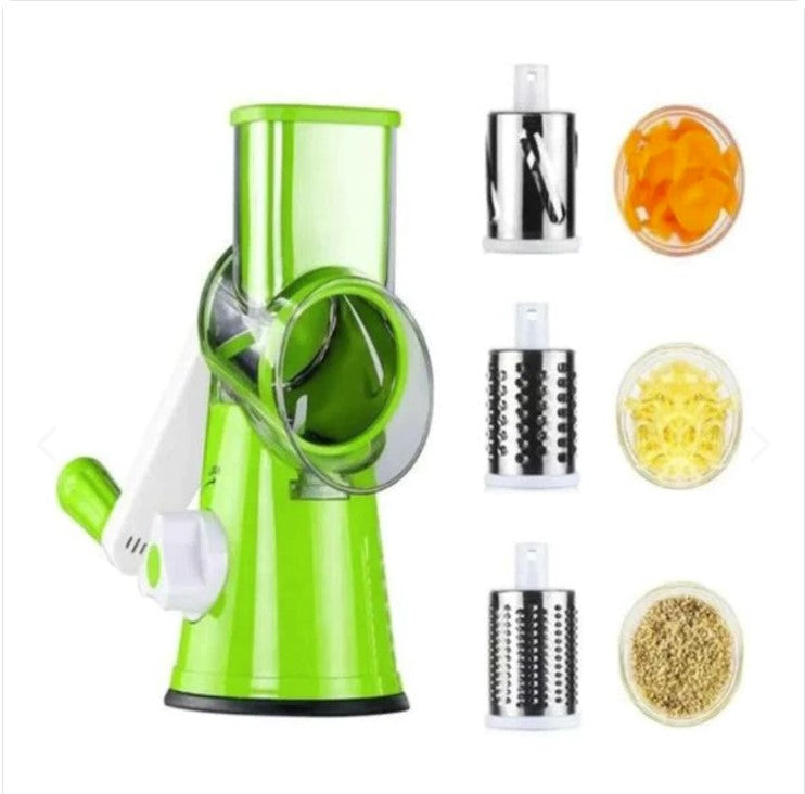 Este práctico rallador no solo corta; también ralla, rebana y juliana en segundos. Gracias a su diseño giratorio tipo “trompo” con manivela, puedes cortar papas, zanahorias, pepinos, zapallos, cebollas y hasta frutas ¡sin esfuerzo y sin tocar cuchillas!